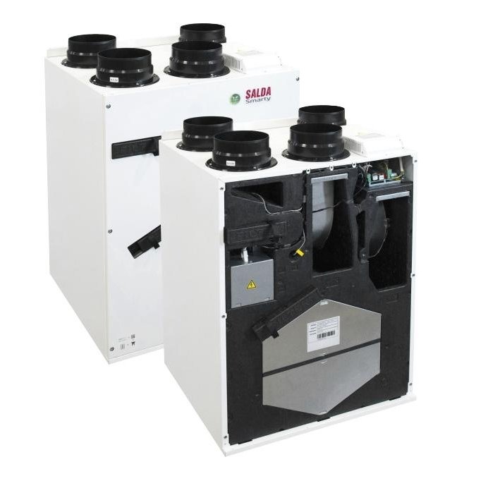 Salda (Салда) Smarty 3XP 1.2 – это модель компактной подвесной приточно-вытяжной установки, которая предназначена для бытового использования. Модель оборудована фильтрами на входе и выходе, малошумным двигателем, рекуператором и пультом управления. Во время летнего сезона рекуператор не используется, благодаря функции байпас.