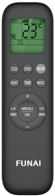 Funai (Фунаи) Shogun RAC-SG55HP.D04 – это бытовой настенный кондиционер, наружный блок которого работает на компрессоре постоянной производительности. Модель поддерживает большое количество функций и режимов и комплектуется беспроводным пультом ДУ, кнопки которого можно блокировать, чтобы дети не могли сбить выставленные настройки случайным нажатием.