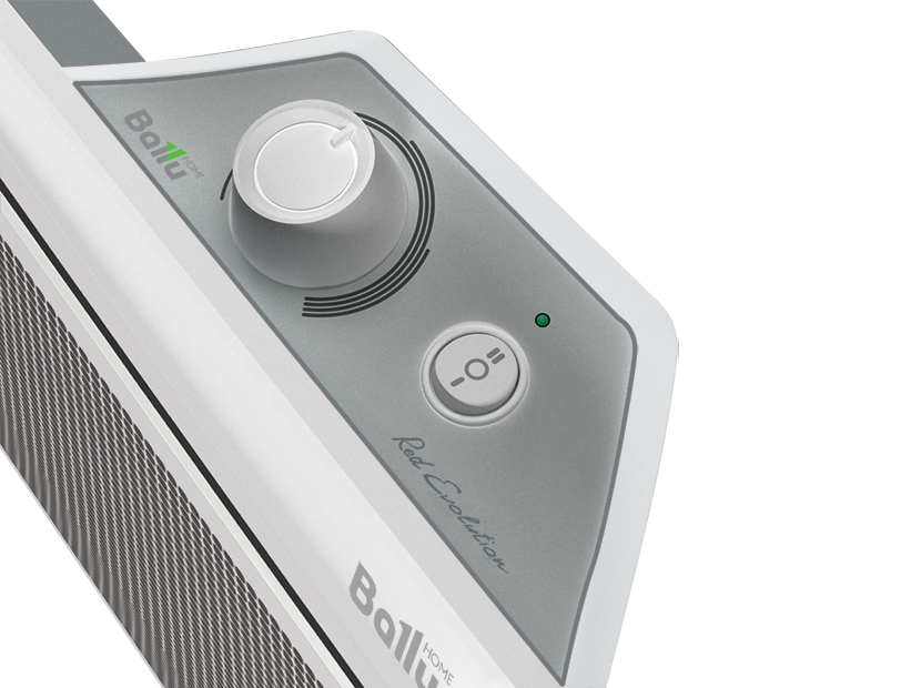 Бытовые обогреватели серии RED Evolution от Ballu – это тепловое оборудование с комбинированным способом обогрева помещений. Внешне прибор очень похож на обычный электрический конвектор, те же размеры, форма корпуса, способ установки – но вместо электрического нагревательного элемента в корпусе обогревателя серии RED Evolution «спрятаны» излучающие нагревательные пластины. Основной обогрев происходит путем инфракрасного излучения – тепло передается предметам в помещении, которые в последствие нагревают воздух. «Дополнительно» в данном приборе в конвекционной камере нагревается воздух, проходящий через прибор (все тем же способом инфракрасного излучения) и естественным образом распределяется по помещению – конвекционная составляющая обогрева прибора серии RED Evolution. Для улучшения рассеивания тепла передняя панель обогревателя выполнена с перфорацией. Данный обогреватель благодаря безопасному экологичному способу обогрева может использоваться в помещениях различного типа.