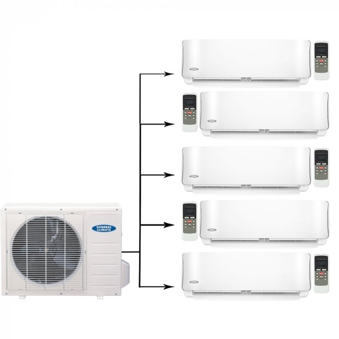 Для создания и поддержания комфортных климатических условий в жилых пятикомнатных помещениях используется готовый комплект мультисплит-системы General Climate (Дженерал Климат) GU-M5EA42HN1/GC-MES07HRN1*5шт. Качественное оборудование легко устанавливается и просто в использовании. Внутренние блоки функционируют в нескольких режимах работы.